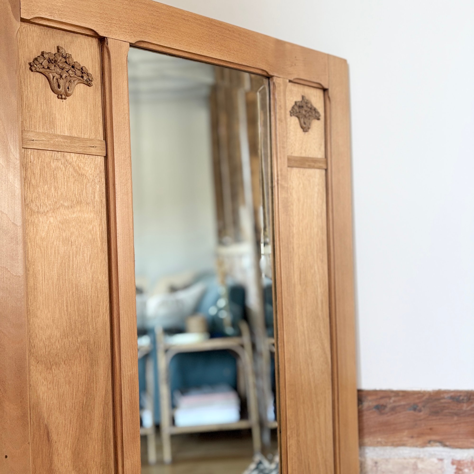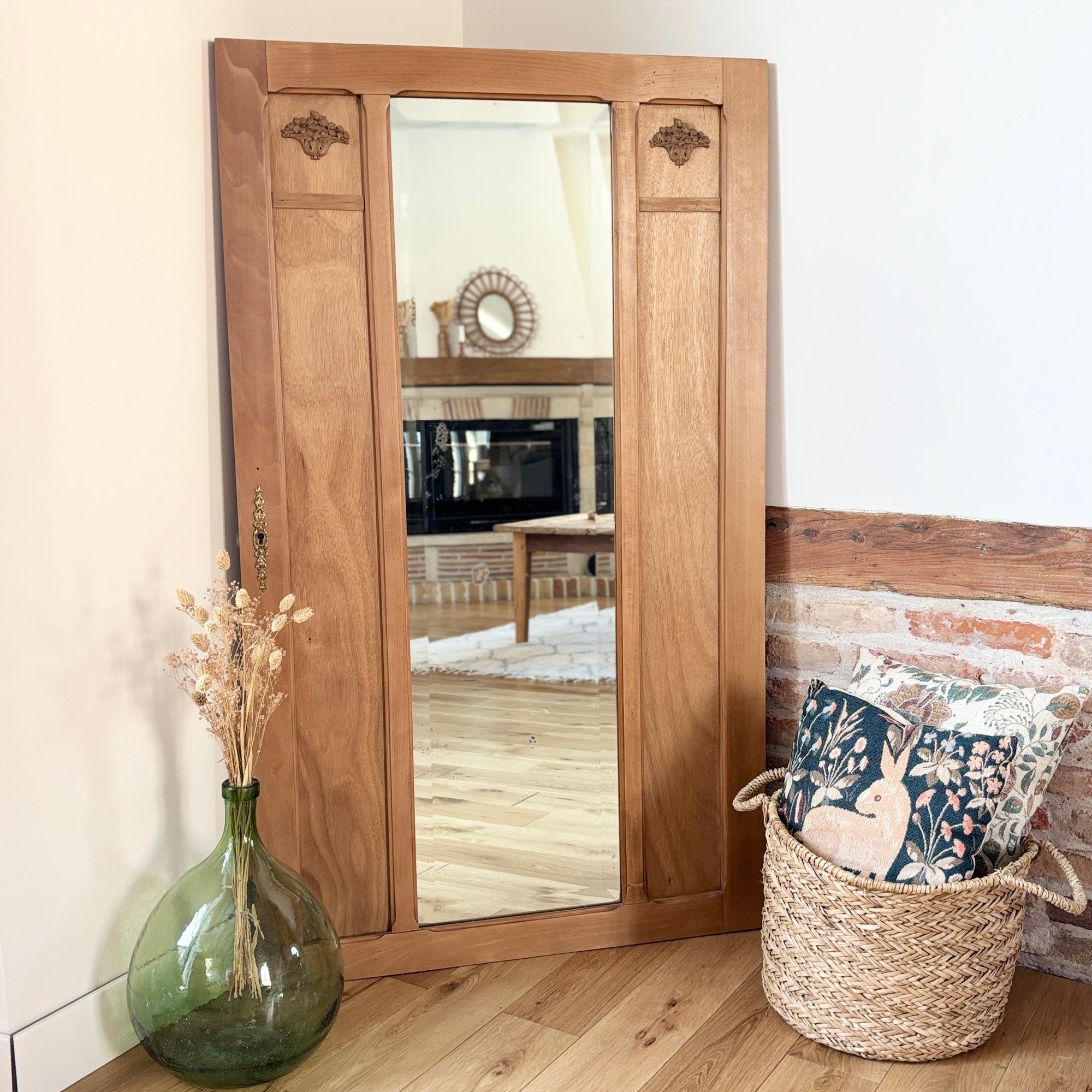 Miroir, mon beau miroir… est en réalité une porte provenant d’une armoire des années 30 malheureusement disparue.